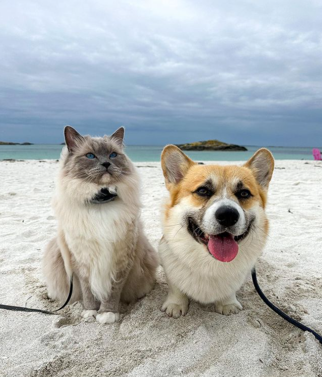 Nonostante le differenze, ci sono innumerevoli storie di cani e gatti che non solo coesistono, ma diventano veri amici. In molti casi, i gatti imparano a tollerare, e talvolta ad apprezzare, la compagnia dei cani, mentre i cani possono diventare protettivi e affettuosi verso i gatti. Un esempio di amicizia nata tra cane e gatto, diventata celebre sui social, è la storia del corgi Yoshi e del ragdoll Minus. Questa storia si svolge in Norvegia, dove Minus, il gatto di razza ragdoll, è stato il sovrano indiscusso della casa di Christine per ben quattro anni. Come spesso accade con i gatti, Minus era il padrone assoluto della casa, gestendo tutto e tutti con la sua tipica aria regale e distaccata. Tuttavia, la sua tranquilla supremazia è stata messa alla prova quando Christine ha portato a casa un nuovo membro della famiglia: Yoshi, un cucciolo di corgi vivace e socievole, pieno di energia e desideroso solo di giocare. Inizialmente, Minus si è mostrato chiaramente riluttante nei confronti del nuovo arrivato, mantenendo le distanze e osservando con sospetto quel piccolo tornado peloso. Ma Christine non si è arresa. Con pazienza, ha continuato a farli interagire, portandoli spesso insieme a fare lunghe passeggiate nel bosco. Col tempo, qualcosa è cambiato: Minus ha iniziato ad avvicinarsi a Yoshi, abbandonando progressivamente la sua diffidenza. Quell’iniziale ostilità si è trasformata in affetto, dimostrando che, anche tra un gatto e un cane può nascere un bellissimo rapporto. Dopo tutto… l’amicizia non conosce specie!