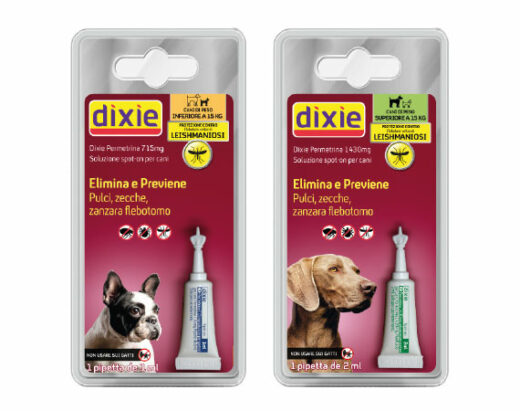 DIXIE PERMETRINA formulato per trattamento e prevenzione contro la parassitosi esterna di pappataci, zanzare, pulci, zecche e pidocchi nei cani. Con una concentrazione molto alta di permetrina (piu di 715 mg) con un basso volume/alta concentrazione, il prodotto si diffonde rapidamente con l’effetto insetticida.