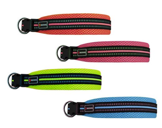 Collare per cani sportivi in tessuto mesh disponibili in 4 colori.