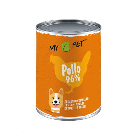 L’umido My Pet al Pollo è un alimento completo per cani adulti di tutte le taglie. Preparato esclusivamente con materie prime selezionate, è un alimento altamente appetibile e digeribile. È privo di conservanti e coloranti aggiunti.