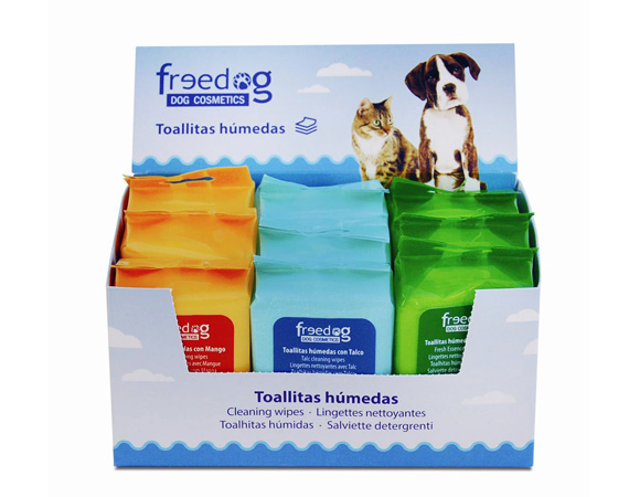 Salviette Detergenti per Cani e Gatti. Disponibili nelle profumazioni Mango, Talco o Menta.