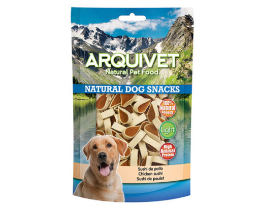 Snack a forma sushi con carne di pollo. Forniscono un importante apporto di vitamine alla dieta del tuo cane. Il pollo è un ingrediente nutriente e ipoallergenico per natura, quindi è salutare. Possono essere dati al cane come premio o cibo complementare.