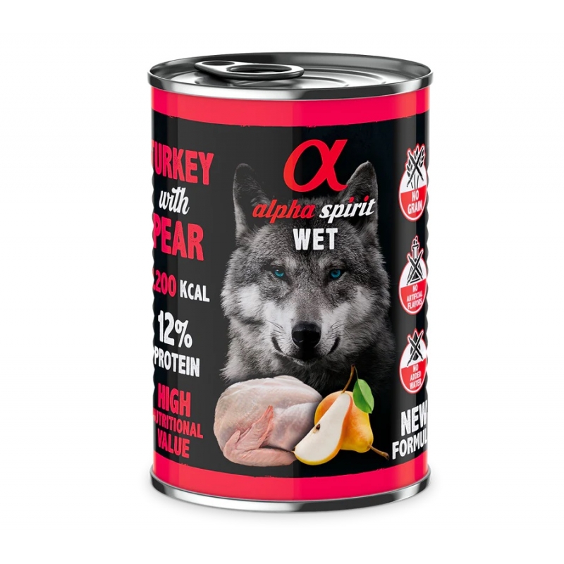 Alimento umido per cani Alpha Spirit al tacchino e pera.